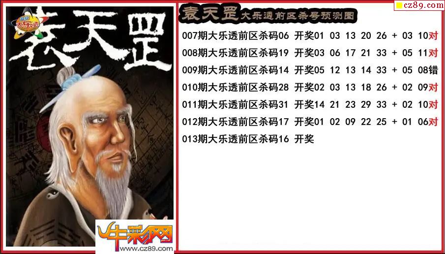 大乐透013期袁天罡前区杀号预测图
