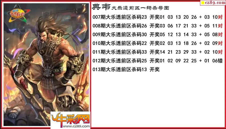 大乐透013期典韦前区一码杀号图